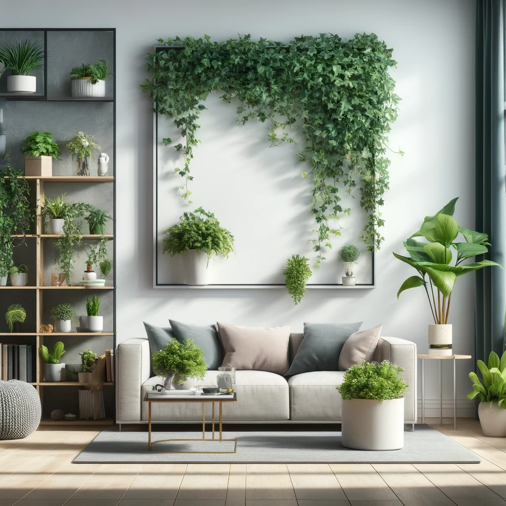 • Le Lierre (Hedera helix) : Connu pour sa robustesse et sa capacité à s’adapter à divers environnements intérieurs, le lierre excelle à filtrer plusieurs types de toxines aériennes, y compris le benzène, le formaldéhyde, et le trichloréthylène. Son port grimpant ou retombant le rend idéal pour être placé sur des étagères hautes ou dans des jardinières suspendues, maximisant ainsi l’espace vertical.